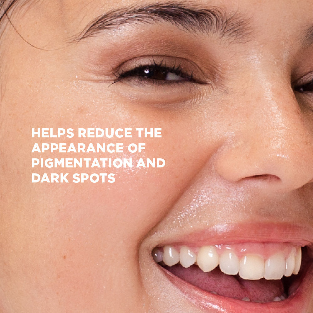 The exfoliating action of glycolic acid removes old skin cells, helping to reduce pigmentation for a more even skin tone. Glycolic acid has also been shown to stimulate collagen production, which will help reduce the appearance of fine lines.
