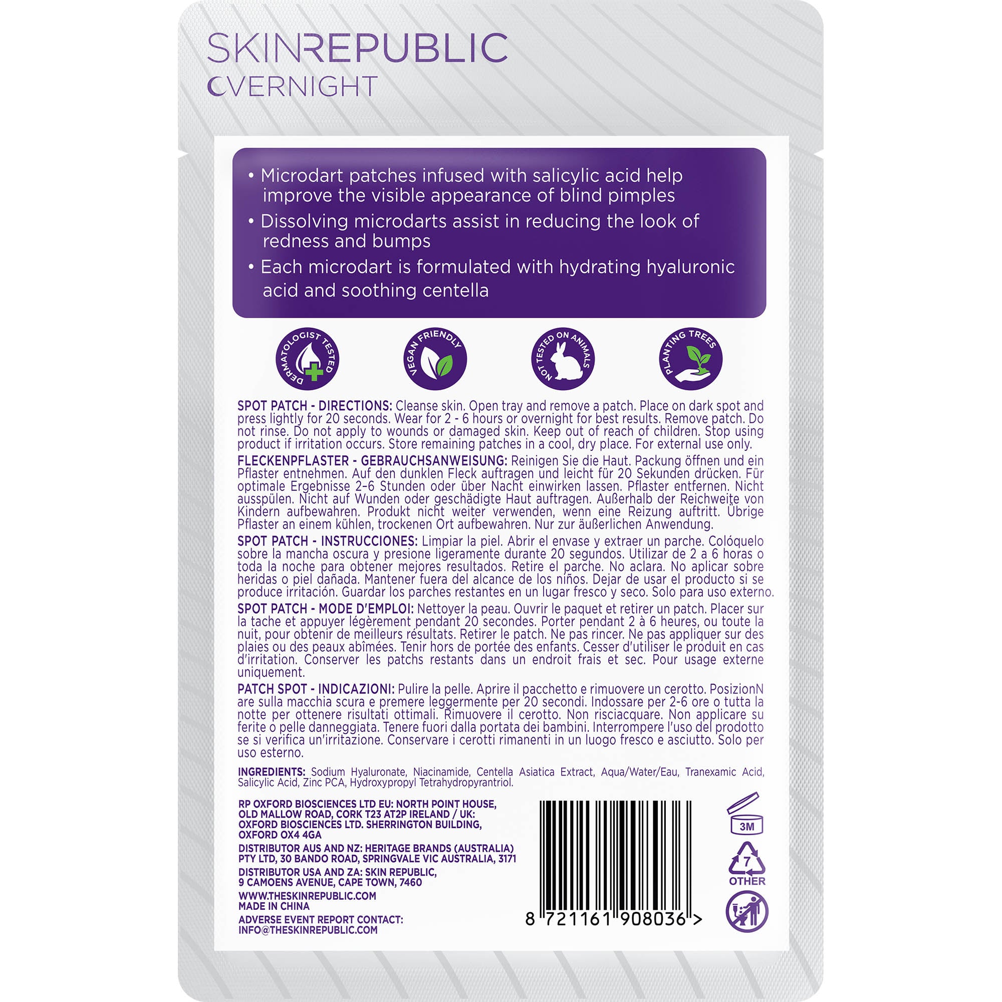 Cleanse skin. Open tray and remove a patch. Place on dark spot and press lightly for 20 seconds. Wear for 2 - 6 hours or overnight for best results. Remove patch. Do not rinse.