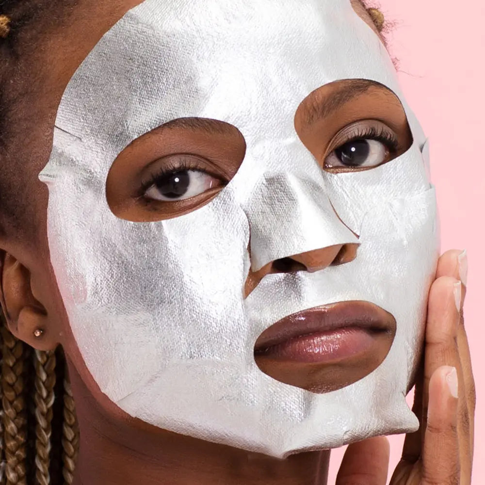 Cleanse skin. There are two sections of the mask. Place the white side of the mask on face with shiny, foil side facing outwards. Wear mask for 15-20 minutes. Remove mask. Do not rinse. Excess serum can be applied to neck, décolletage and hands.